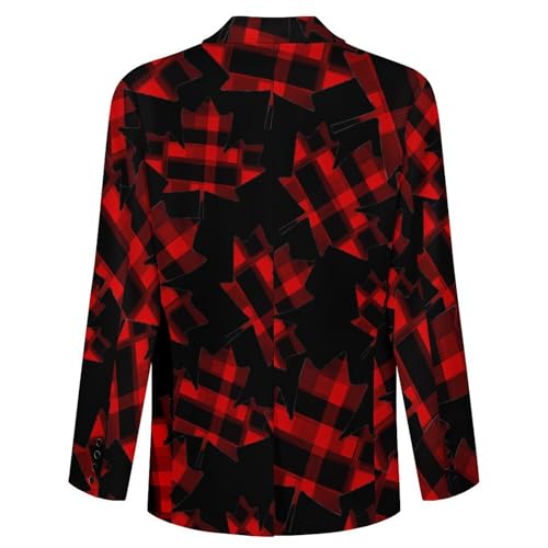 Canadian Flag Maple Tartan Checked Men's Slim Suit Long-Sleeve Prom Tuxedo Classic Two Button Business Jacket 6