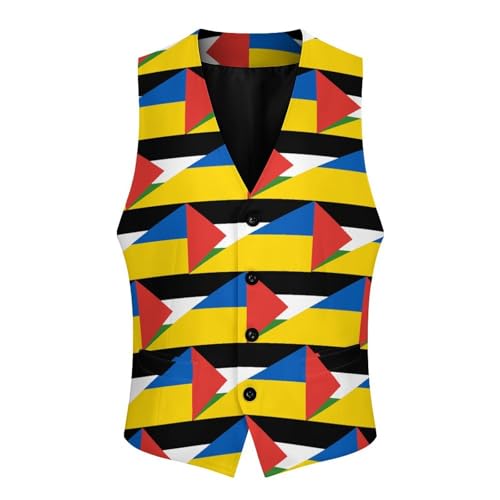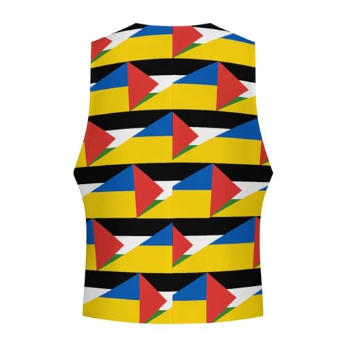 HOT ! Palestine And Ukraine Flag Suit Vest for Men Slim Fit Sleeveless Jacket V Neck Business Waistcoat Button Up Dressy Top