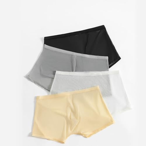 Men's Ice Silk Sexy Mesh Boxer Briefs Ultra-Thin Transparent Breathable Hollow Underwear 4