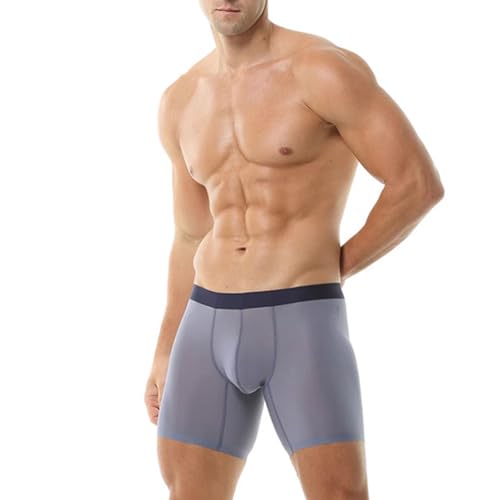 HOT ! Men's Ice Silk Mesh Boxer Briefs See Through Sports Underwear Ultra Thin Anti Crotch Extended Shorts