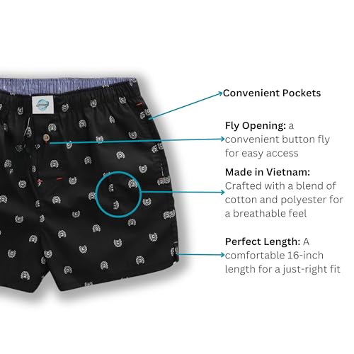 • COMFORTABLE RELAXED FIT WITH IDEAL LENGTH—Designed for maximum ease, these woven boxers offer a relaxed fit with just the right length to keep you comfortable all day. The loose-fitting style provides freedom of movement without riding up, making them perfect for lounging or wearing under clothes. They are machine washable for easy care.