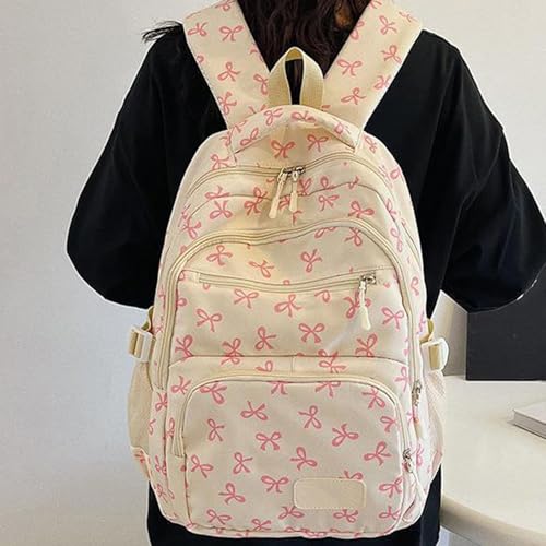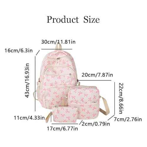 HOT ! 3Pcs Pink Bow Backpack, Bow Backpack Bags Set for Girls, Cute Kawaii Backpacks Set Large Capacity (White Brown,One SIze)