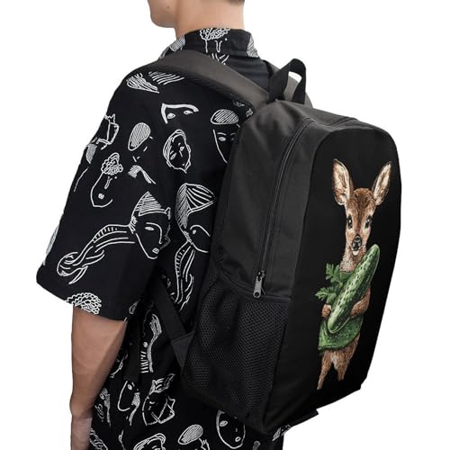 HOT ! Cute Deer Cucumber Pickle 17 Inch Backpack Classic Travel Daypack with Adjustable Shoulder Straps for Men Women