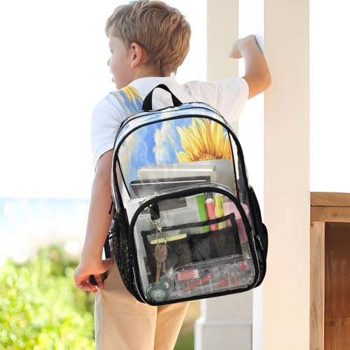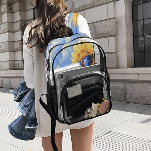 HOT ! Oil Painting Sunflower Clear Backpack - Stadium Approved Large 15.7-inch Waterproof Transparent Bag for Sports, Concerts, Work, Travel#421