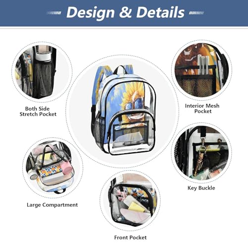 More information about Oil Painting Sunflower Clear Backpack - Stadium Approved Large 15.7-inch Waterproof Transparent Bag for Sports, Concerts, Work, Travel#421