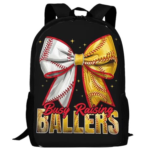 Busy Raising Ballers Softball Baseball Game Day Backpack Large Capacity Backpacks Leisure Travel Daypack 12.5X5.5X16.5 inch 7