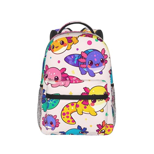HOT ! Colorful Axolotl Backpack Large Capacity Lightweight Casual Travel Sports Backpack 11.4X7.8X15.7 inch