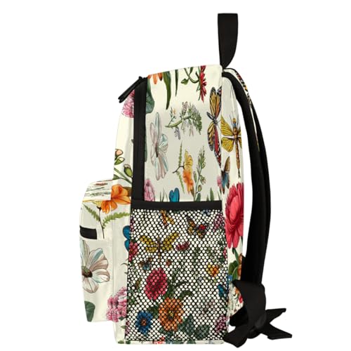 Retro Flowers Dragonflies Butterflies Toddler Backpack for Boys Girls, Lightweight Waterproof Kids Backpack 12 Inch with Chest Strap, Casual Daypack Kindergarten Preschool Daycare Bag 6
