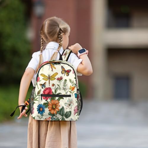 Retro Flowers Dragonflies Butterflies Toddler Backpack for Boys Girls, Lightweight Waterproof Kids Backpack 12 Inch with Chest Strap, Casual Daypack Kindergarten Preschool Daycare Bag 1