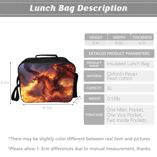 Klymax Fire Dragon Backpack Kids Schoolbag with Lunch Box Bag Pencil Bag 3pcs Bookbag Sets for Boys Girls 6