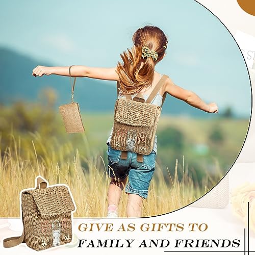 2 Pcs Kids Straw Backpack & Clutch Handbag - Woven Mini Bohemian Cute Little House Straw Backpack for Girls 3
