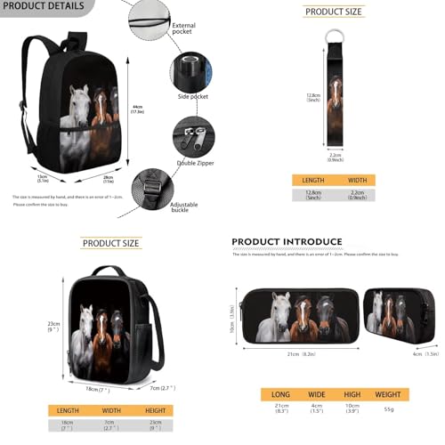 More information about 3D Horse Backpack for Teen Girls for Middle School 4 Piece School Bag Set with Lunch Bag Pencil Case Holder Keychain Girls Backpack 10-12 Years Old Casual Travel Bookbag Satchel Laptop Bags