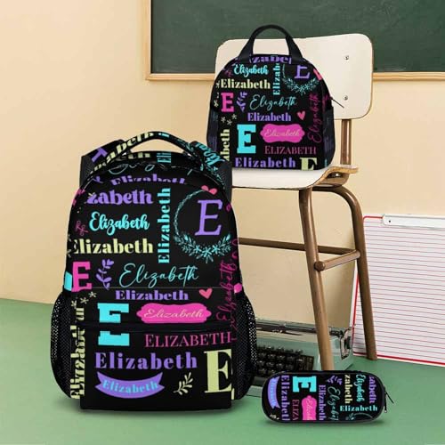 School Backpack with Lunchbag for Kid Boys Girls, Back to School Supplies Gifts, Custom 3 in 1 Black Backpacks with Pencil Case Matching Combo for Primary Preschool Kindergarten 1