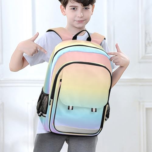 Plaaee Gradient Rainbow Pastel Backpack Kids' Backpacks Elementary School Backpack, 15L Children's School Bag for School, Picnics, Travel, Ages 6-12 1