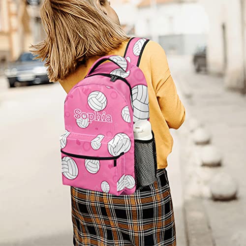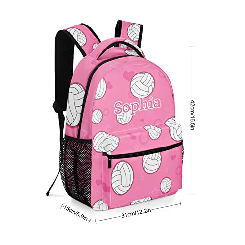 Cute Volleyball Pattern Pink Personalized Backpack Waterproof Shoulder Bag for Birthday Holiday Gift with Name 5