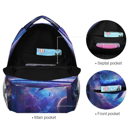 Whale Planet Solar System Space Backpack for School Boys Girls Adults Kids Bookbag Laptop Bag 18L 6