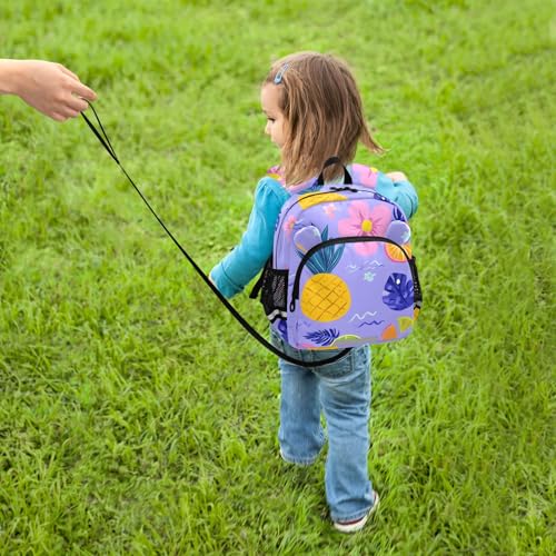 Kid's Backpack for Boys & Girls Toddler Bag Flamingo Pineapple Pattern Backpack with Safety Leash 5