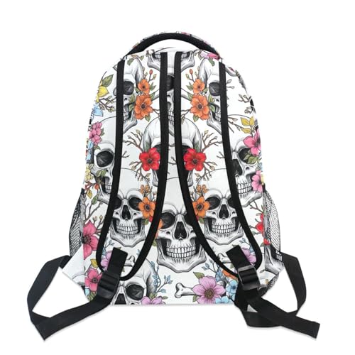 School Backpack for Girls, Kids Travel Backpack, Kids Back to School Supplies, Ideal for Ages 6–14, White Skull Colorful Flower 1