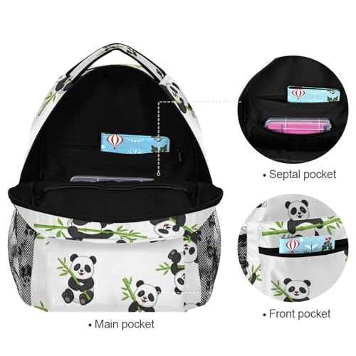 Kids School Bag, Cute Cartoon Pandas White Lightweight Travel Back Pack for Boys Girls Back to School Supplies,16 in 6