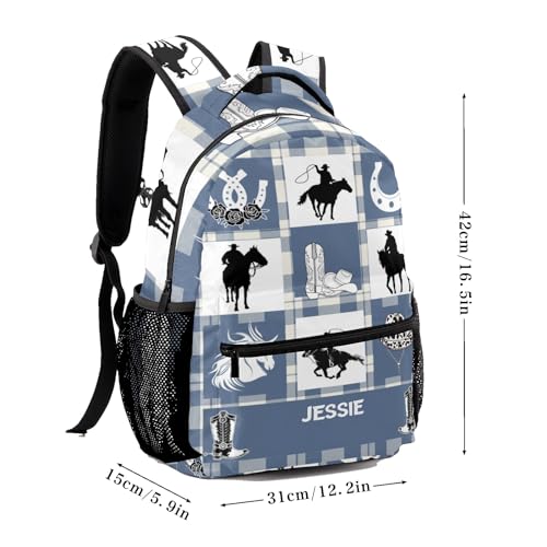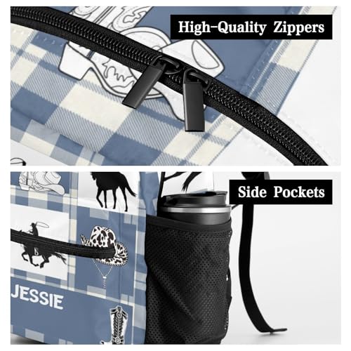 Personalized Name Cowboy Boot Hat Plaid Bookbag with Name,Custom Name Giftize Back Pack, Fashion, Adjustable Shoulder Straps 4