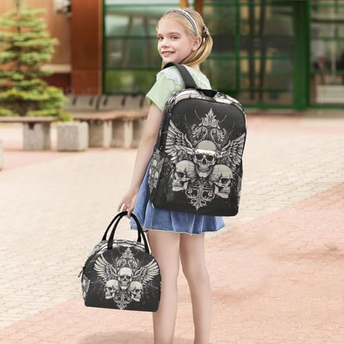 Backpacks, Skulls Wings Black Waterproof Insulated Cooler Bag, Girls Bookbag with Lunch Box 5