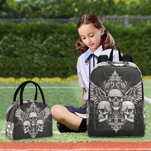 Backpacks, Skulls Wings Black Waterproof Insulated Cooler Bag, Girls Bookbag with Lunch Box 1
