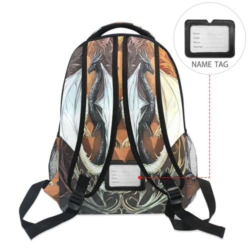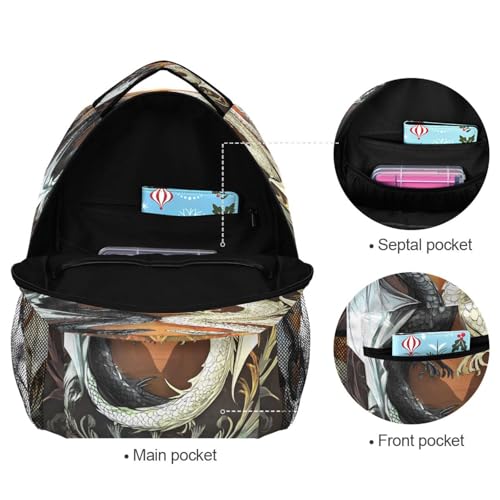 Black White Dragon Backpack for School Boys Girls Adults Kids Bookbag Laptop Bag 15L 1