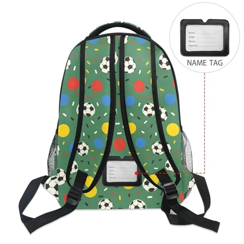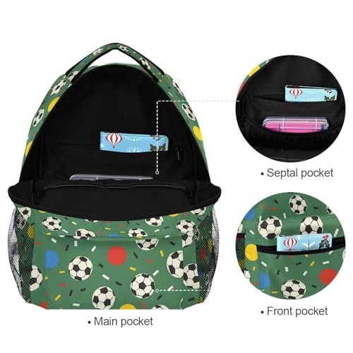 Soccer Ball Polka Dot Green Backpack for School Boys Girls Adults Kids Bookbag Laptop Bag 15L 7