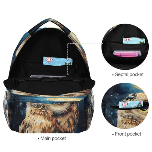 Owl Moon Night Watercolor Backpack for School Boys Girls Adults Kids Bookbag Laptop Bag 15L 7