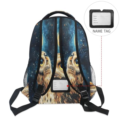 Owl Moon Night Watercolor Backpack for School Boys Girls Adults Kids Bookbag Laptop Bag 15L 4