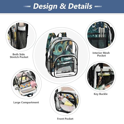 More information about Dragon Flower Blue Clear Backpack Heavy Duty See Through Transparent PVC BookBag for Kids Boy Girl School Work