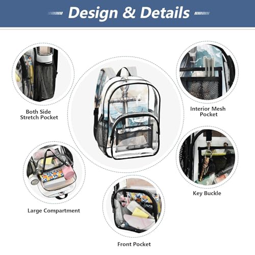 Anchor Seashell Watercolor Clear Backpack Heavy Duty See Through Transparent PVC BookBag for Kids Boy Girl School Work 7