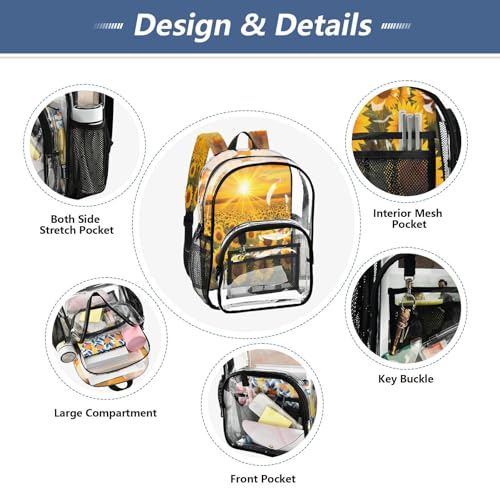 Sunflower Field Clear Backpack Heavy Duty See Through Transparent PVC BookBag for Kids Boy Girl School Work 6