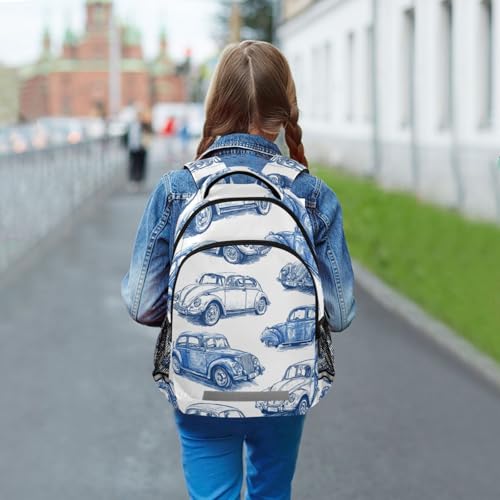 Blue Vintage Cars Kid's Elementary Middle School Backpack for Son Daughter, Age 6-12 Back to School Backpack Bookbag Schoolbag for Boys Girls 7