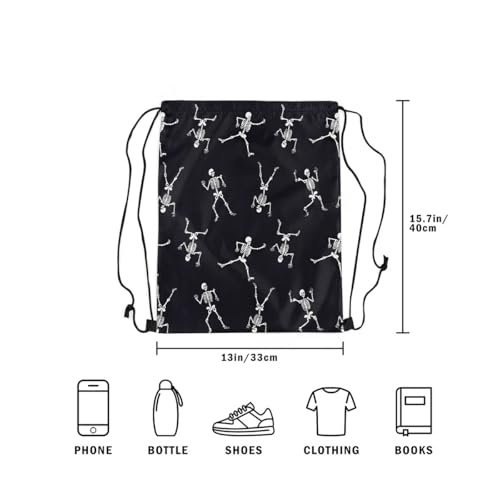 Erosebridal Sugar Skull String Backpack,Gothic Skeleton Drawstring Bags,Black and White Bone Draw String Back Bag,Halloween Spooky Drawstring Backpack 13x15.7 1