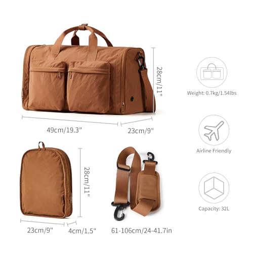 Aji Foldable Gym Bag for Women Men with Shoes Compartment, 3 in 1 Carry on Travel Duffel Bag with Trolley Sleeve, Lightweight&Water Resistant Duffel Bag for Travel, Sports, Fitness&Workout,Warm Brown 4