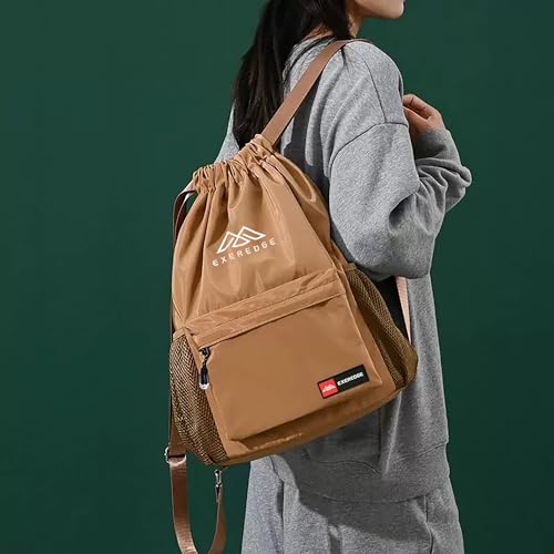 HOT ! Drawstring Backpack for Women Men Sport Gym Bag Water Resistant Backpack Sandproof Beach Bag With Mesh Pockets (Khaki)
