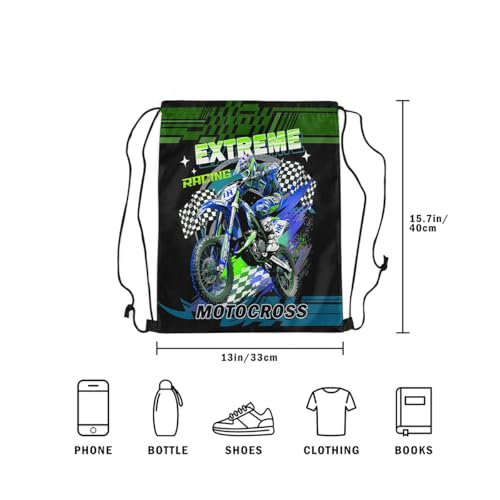 HOT ! Feelyou Dirt Bike Drawstring Backpack Motocross Racer Sports Gym String Bag Racing Motorcycle Drawstring Bags Extreme Sports Waterproof Cinch Bag 13"x15.7"