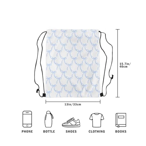 jejeloiu Blue Bow Print Drawstring Bags Cute Bowknot Sports Drawstring Sackpack Set Ribbon Bow Drawstring Backpack Blue Bow Room 13"x15.7" 1
