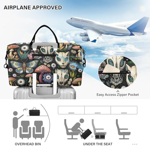 Skull Mushrooms Eyeball Black Sports Gym Bag for Women Men Travel Duffel Bag Weekend Overnight Carry on Bag with Toiletry Bag Yoga Bag for Plane Hospital Swimming Yoga Workout 4