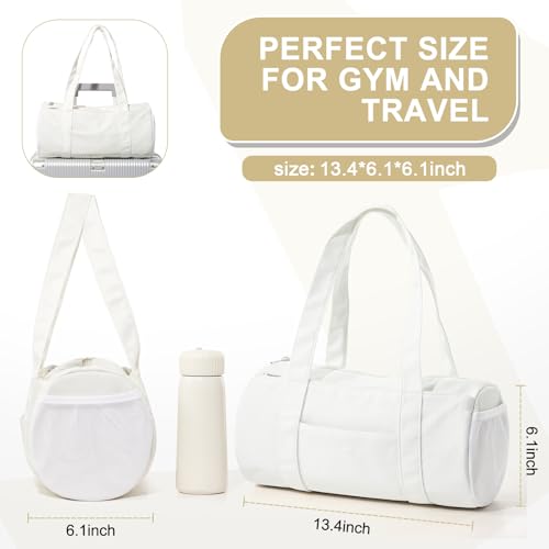 Small Gym Bag 13.78"x6.7"x6.7" Carry On Duffel Bag, Mini Personal Item Bag Lightweight Tote Weekender Overnight Bags for Women and Men Sports, Traveling, Swimming, Yoga (Cream Color) 6