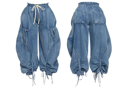 • FEATURE: Wide leg jeans women high waisted with pockets, stretch jeans for women, elastic waist jeans, drawstring jeans women, six-pockets, zip fly with button closure, elastic ankle denim pants, fashion baggy jeans for women