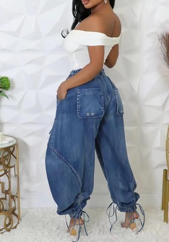 Ptorlio Women's Cargo Jean Elastic Waist Denim Pants Casual Joggers Loose Jeans with Pockets 6