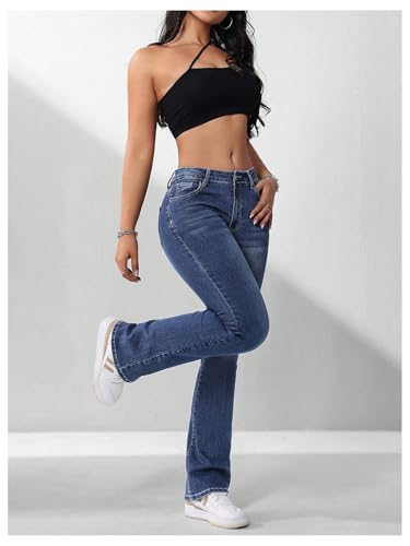 Women's Flare Leg Drop Waist Jeans Casual Skinny Denim Pants Bell Bottoms with Pockets 6