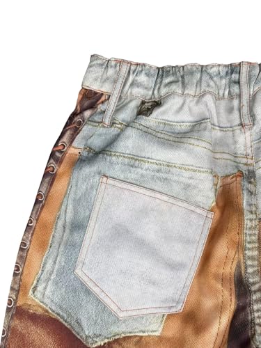 • Design: Women's Y2K pants looks like jeans, feature 4 front button closure, 3D digital printed, elastic waist, easy to wear on/off. Color block streetwear with print is trendy, distressed streetwear pants is of goth style, casual pants, loose cargo pants, mid rise faux denim pants, wide leg jeans with chain gives you a fashion look, goyfriend style