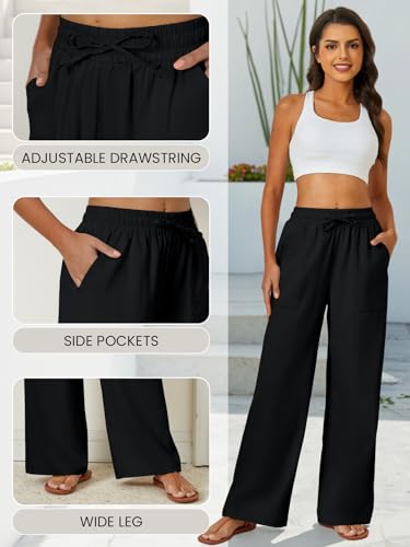 FireSwan Womens Palazzo Pants Casual Drawstring Flowy Pants Wide Leg Summer Beach Linen Trousers with Pockets 3