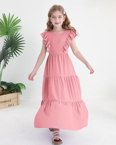 Girls Summer Dresses Tween Tie Back Ruffle Sleeve Kids Swing Flowy Casual Beach Maxi Dress 4