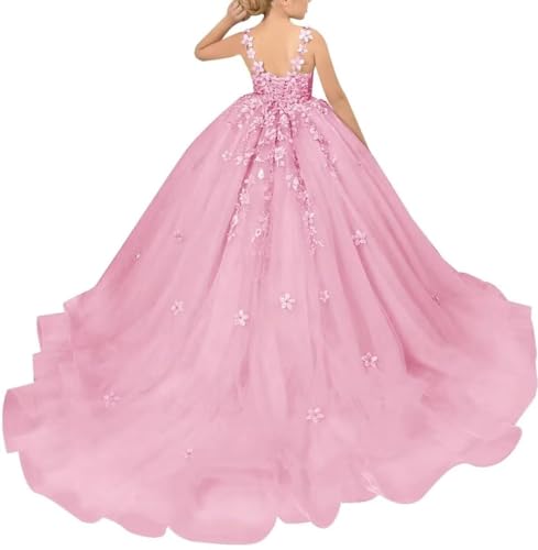 Tulle Flower Girl Dresses Princess Pageant Dress Laces Applique Girls First Communion Gown 3