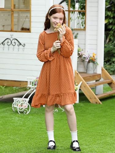 Girls Long Sleeve Dress with Puff Sleeves & Ruffle Hem, Christmas Holiday Party Dress for Fall Winter, Sizes 6-15 5