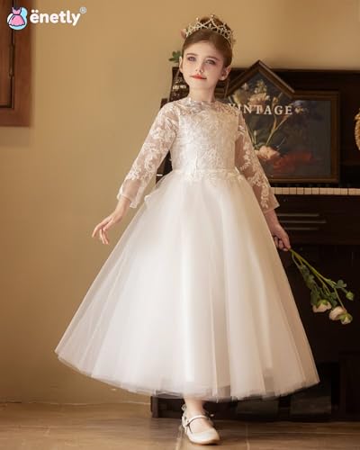 Long Sleeve Flower Girl Dresses for Wedding Tulle Floral Applique First Communion Dress for Girls 6